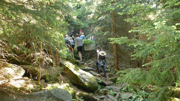 „Mit dem ersten Schritt in den Wald beginnt die Naturbegegnung“, sagt Thomas Fritz, Erlebnispädagoge im Nationalpark Schwarzwald. „Das wissen die Schüler nur meist nicht“, fügt er verschmitzt hinzu. Der fünf Kilometer lange Wildnispfad etwa ist für viele Schülerinnen und Schüler schon ein Abenteuer. Er verläuft durch eine 70 Hektar große Waldfläche, die der Orkan Lothar 1999 verwüstet hat. „Das war kein normaler Trampelpfad, und die Pfützen stellten uns vor eine große Herausforderung“, erzählt eine Schülerin aus dem MLG. „Man konnte über und unter abgestorbene Bäume klettern“, ergänzt ihr Klassenkamerad.